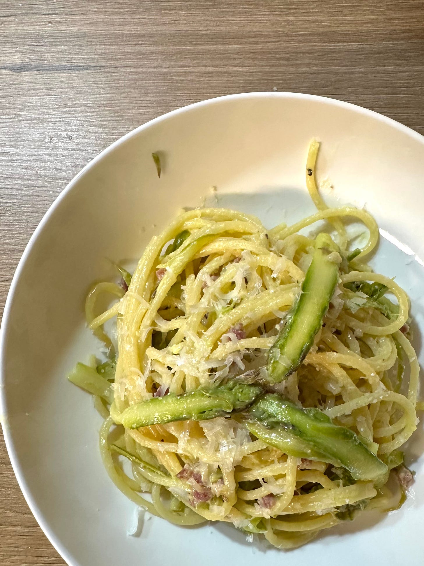 A creamy spring pasta inspired by carbonara—softer, silkier, and made my way